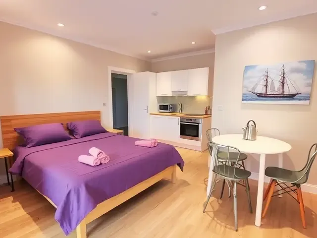 Студио — для тех случаев, когда хочется больше пространства и маленькой «домашности». Мини-кухня спасает, если вы любите перекусить не по расписанию: разогрели, сели за стол, обсудили маршрут. После моря удобно быстро перекусить и снова уйти гулять, не зависая в кафе. А если день ленивый — просто оставайтесь, тут это особенно приятно.